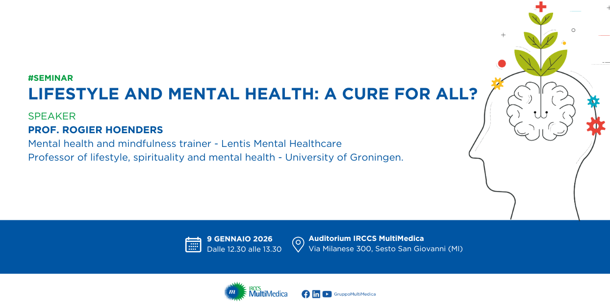 The seminar “Lifestyle and mental health: a cure for all?” will be held on friday 9th January 2026, from 12.30 p.m to 1.30 p.m, in the Auditorium of the IRCCS MultiMedica in Sesto San Giovanni (MI).