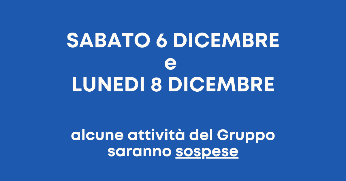 Lunedì 8 Dicembre alcune attività del Gruppo saranno SOSPESE: