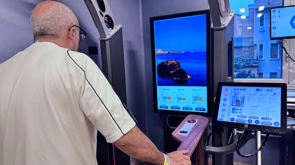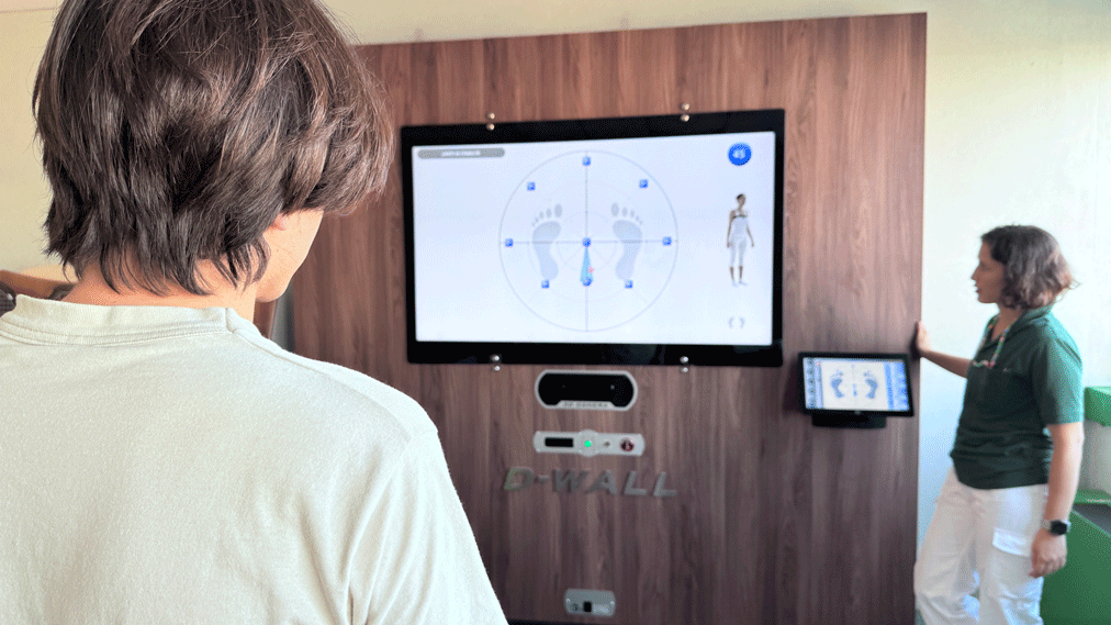 Il paziente si trova davanti a uno schermo che funge da specchio intelligente. Ogni spostamento del peso, ogni asimmetria, ogni incertezza nella postura viene registrata e restituita in tempo reale. È un modo nuovo di capire cosa stia succedendo dentro il proprio corpo, soprattutto in quei momenti in cui la percezione non basta e serve un punto di vista esterno.