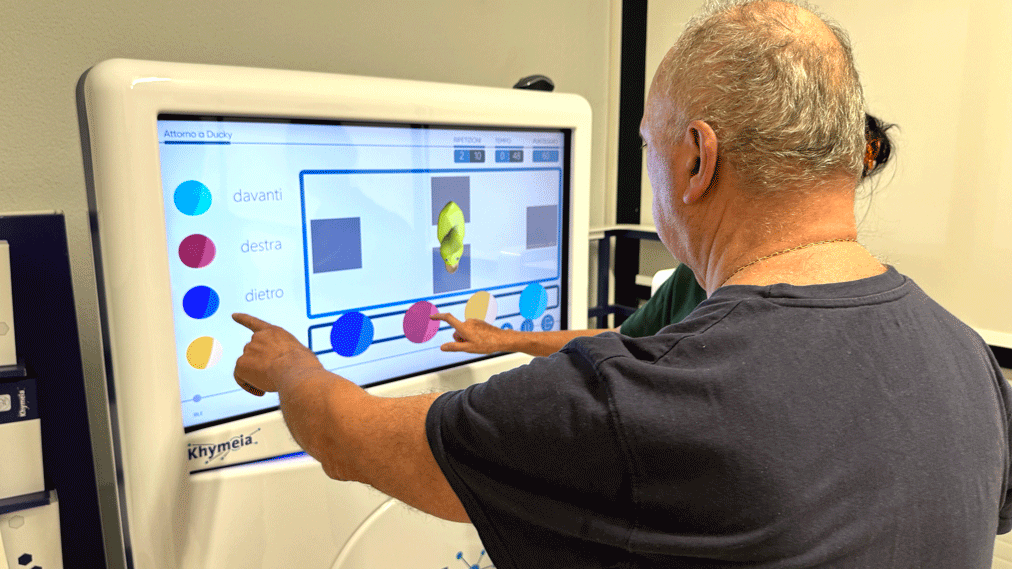 La tecnologia Khymeia, invece, prende il paziente e lo porta via: lo inserisce in ambienti virtuali controllati, dove ogni gesto ha un significato preciso e ogni movimento è parte di una storia interattiva. Qui la riabilitazione diventa un’esperienza immersiva, capace di stimolare il corpo ma anche la motivazione.